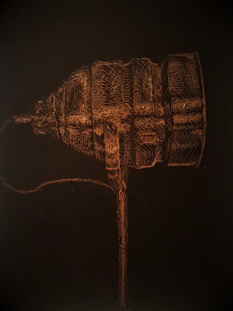 I was really surprised with how well these came out and also how the copper reinforces the metallic texture I’m trying to capture on the lamp. I found I really enjoyed drawing with highlights rather than shadows and again love the minimalistic black background. Furthermore I think it really captures the industrial quality of both the lamp and Redon’s personal style. the cross hatching works really well capturing highlights as well as for capturing shadows. With my assignment next, I know this is something I want to explore a little more and think about incorporating into my final assignment piece.