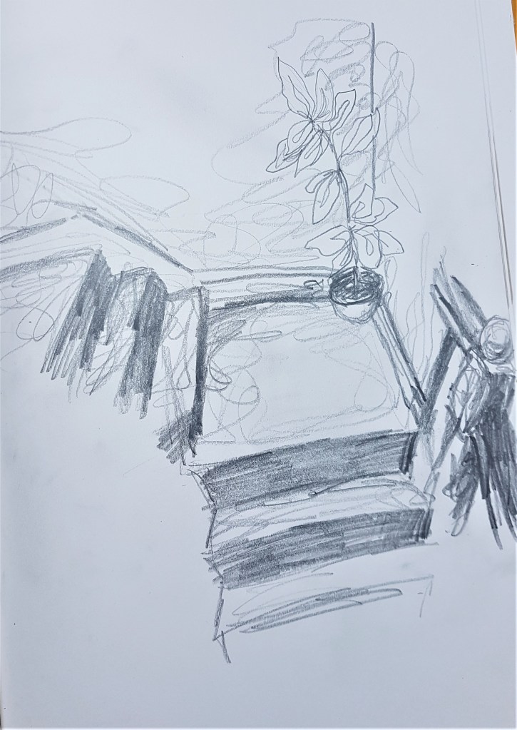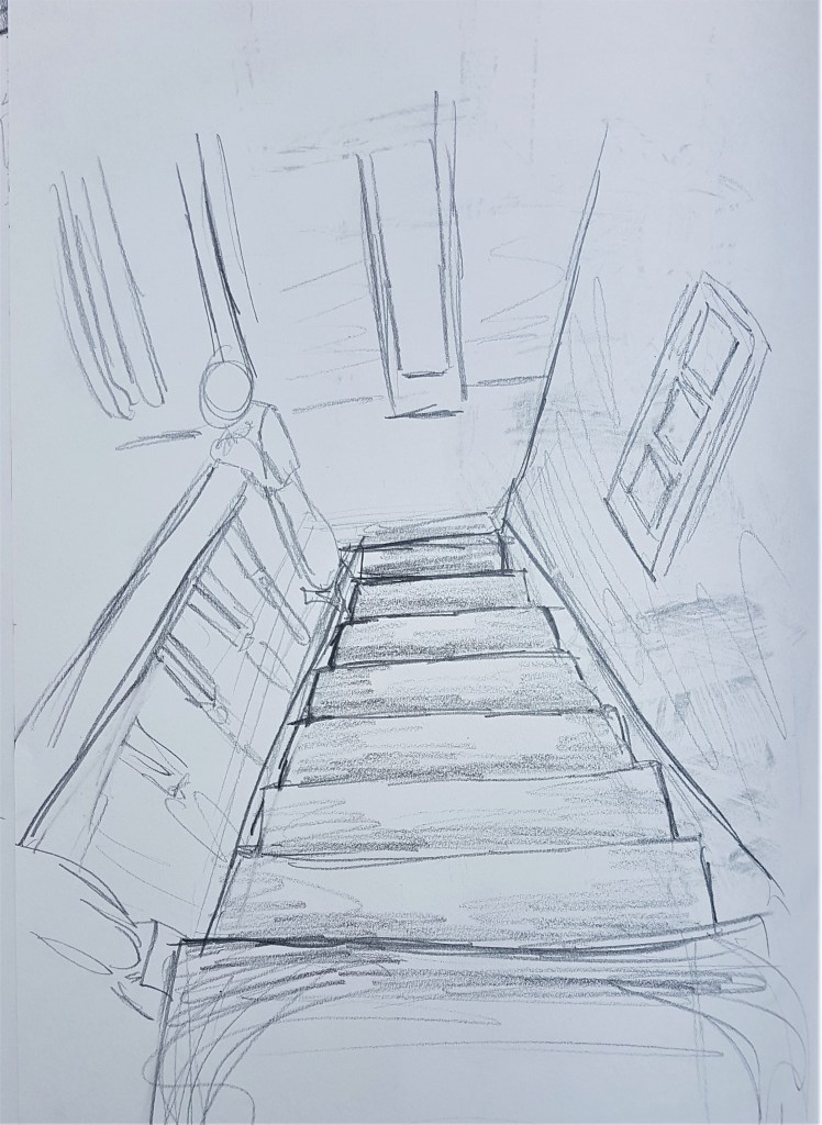I decided to try and capture the stairs as a whole before looking at what to really capture within a more detailed drawing.