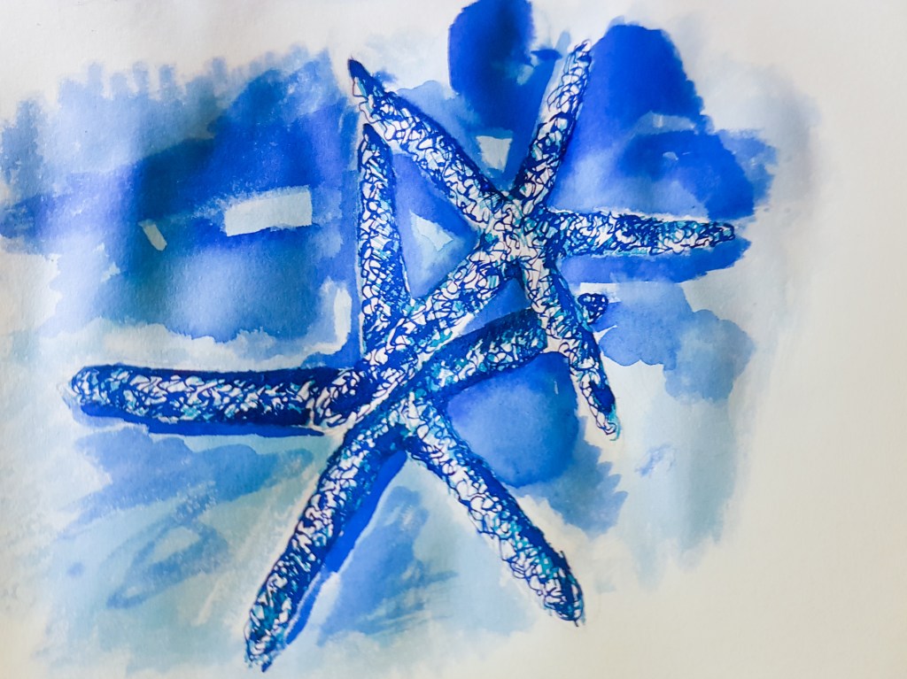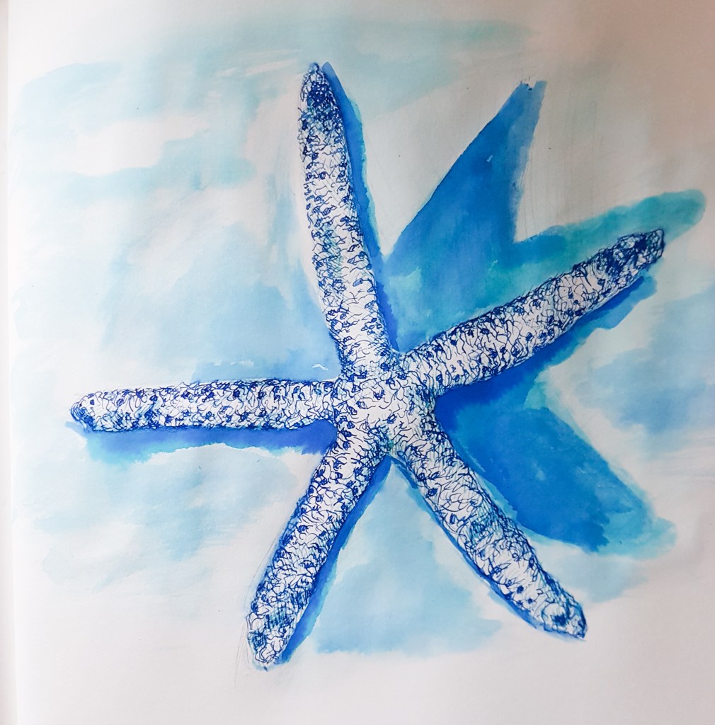 Project 2 Exercise 2 wasn’t a strong point in the development of my skills. My choice of ink as one of my mediums for this exercise wasn’t the best and ended up creating a flat scene in terms of my use of tone. As suggested by Hayley, I looked into the exercise again and gave it another go, choosing some Starfish to help develop my drawing skills in presenting 3D objects.