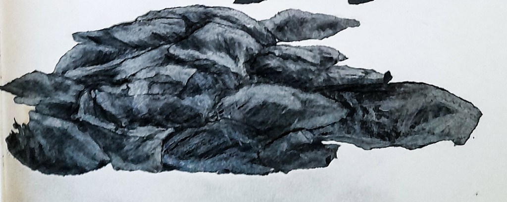 This worked well to add highlights and depth to the ‘sketch’ and create a more 3D effect than a 2D random collage. The white pencil definitely helped to make this more of a cloud. I am happy with how this came out but it didn’t end up with that soft, cloud texture I was hoping for, but it does look like a cloud. Maybe in a mixed media piece this could work well, especially with white paper and combined with my previous oil pastel attempt. However for the detailed sketches that I’m exploring with Part 3, I don’t think this is something that could work moving forward.