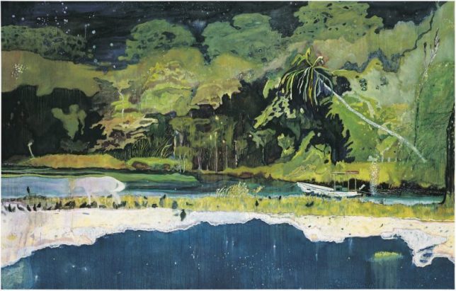 Peter Doig’s work does not focus on realism but rather the expression of nature, often feeling surreal with starry skies over looking forests. Similar to Cezanne, he blocks in the the landscape with colour rather than a focus of detail and line and the outcome is very immersive. He often creates very dark paintings in contrast to what I have looked at so far, and its very unique. In this particular piece it feels a bit like a collage due to his approach to perspective, with different areas, like the sea, not quite fitting into the perspective of the rest of the piece. This is further accentuated by his depiction of animals and people, who feel very two dimensional and flat compared to the rest of the painting.