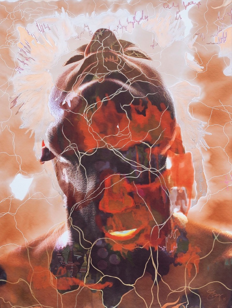 Samantha Louise Emery’s approach is different, she doesn’t have a strong focus for the female body, but what is beyond it. She maintains a deep focus on women’s auras which is evident from her piece ‘Laurie Anderson’ shown above. Emery says about her work that “When I look at my subject, I see another version of myself, as I do believe we are all mirrors. Woman to woman, I feel that I can relate on a much deeper level.” She looks at exploring the female form beyond the traditional Male Gaze, to look at the identity of her female muse, not just the outward appearance, but exploring the relationship between outward image and the inner character, portraying women with a strong presence rather than just to appear for men.