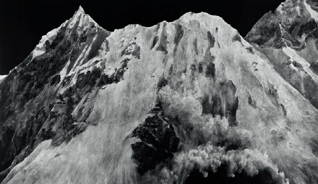 Initially it is clear that historical interpretations of landscapes, particularly from the impressionist movement, tend to involve lots of bright, pastel colours, and soft marks to make up the landscape, which holds a romanticised feel and vibe to many 19th century landscapes. I do like the approach and the gentle approach and care many of these Artists, some I’ve looked at before, have towards landscapes. Seurat’s work is a love letter to the landscapes he depicts, portraying the beauty he finds in the world around him, compared to the harsher depictions modern Artists opt for. The time consuming approach he took, being the pioneer of pointillism, shows a fondness and a joy for the landscape he depicts, compared to the harsher, monochromatic approach Dean and many contemporary Artists use. Dean’s odd choice in medium (chalk on a chalkboard) helps her to create a texture similar to the rough rocky mountains she depicts in her ‘Fatigue’ series. It is something that I would lean towards in terms of inspiration and the direction I want to head in with my drawings and work on landscapes. Her goal seems very orientated in capturing the rough, ruggedness that mountain ranges hold, she wants to capture realism and accuracy in her depictions, compared to Seurat’s landscape which seems to be about creating a feeling rather than accuracy. His approach seems dreamlike, and wanting to depict an ideal place to be; somewhere warm and scenic a pleasant stroll through a park. The opposite of showing the harsh and cold terrain of a mountain range.